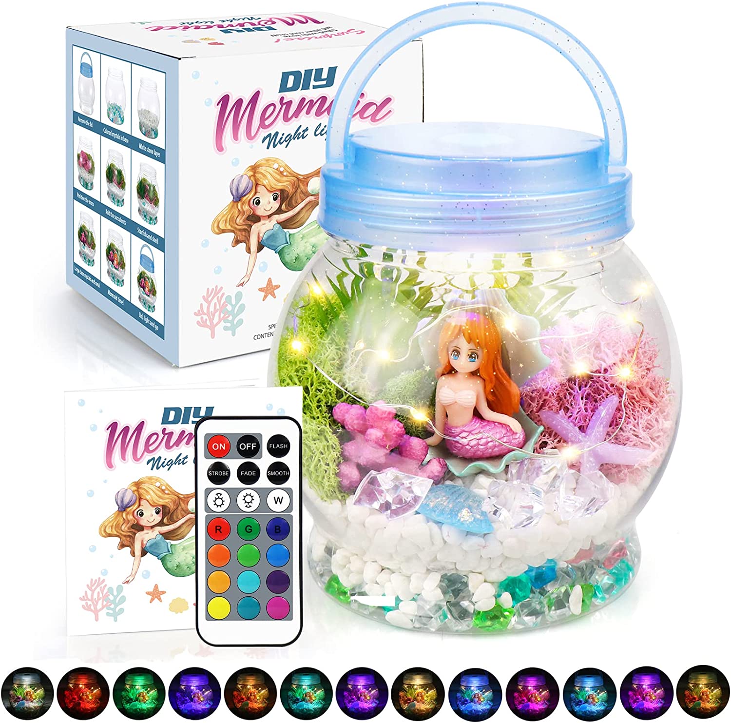 Diy Light Up Mermaid Terrarium Kit For Kids 3 Light Modes Mermaid Toys Activities Kits Presents Arts Crafts Mermaid Gifts For Girls Age 4 5 6 7 8 12 Years Old Birthday Gift Bedroom Decor